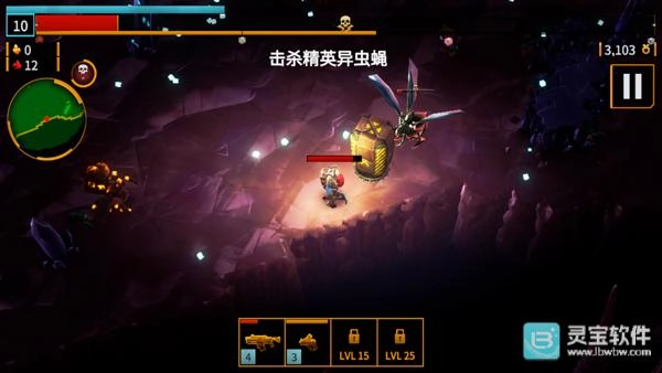 5、游戏采用自动射击机制,玩家消灭异虫后可获得经验值,每次升级时能从多项强化选项中选择一项进行提升。