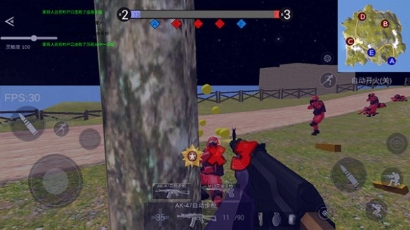 4、游戏开始后,使用左侧的摇杆来控制角色的移动,而右侧则负责射击、跳跃、蹲下等操作。