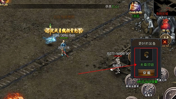 玩家进入地图挑战后,击败怪物有概率随机掉落装备,点击右侧的装备即可一键穿戴。