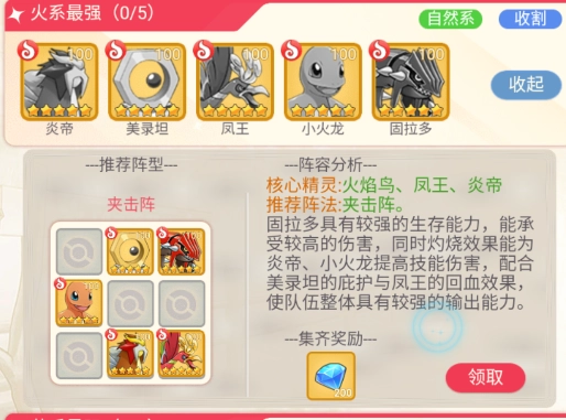 推荐阵法:夹击阵。固拉多具有较强的生存能力,能承受较高的伤害,同时灼烧效果能为炎帝、小火龙提高技能伤害,配合美录坦的庇护与凤王的回血效果,使队伍整体具有较强的输出能力。
