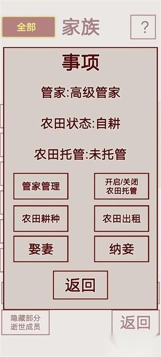 8、家族中的管家具备照顾成员、修缮房屋、采购粮食以及降低健康消耗等职能,其月薪从家族资产的铜钱中扣除。其中初级管家每月薪资为138文,中级管家每月388文,高级管家每月888文。个人给出的建议是选择雇佣管家。