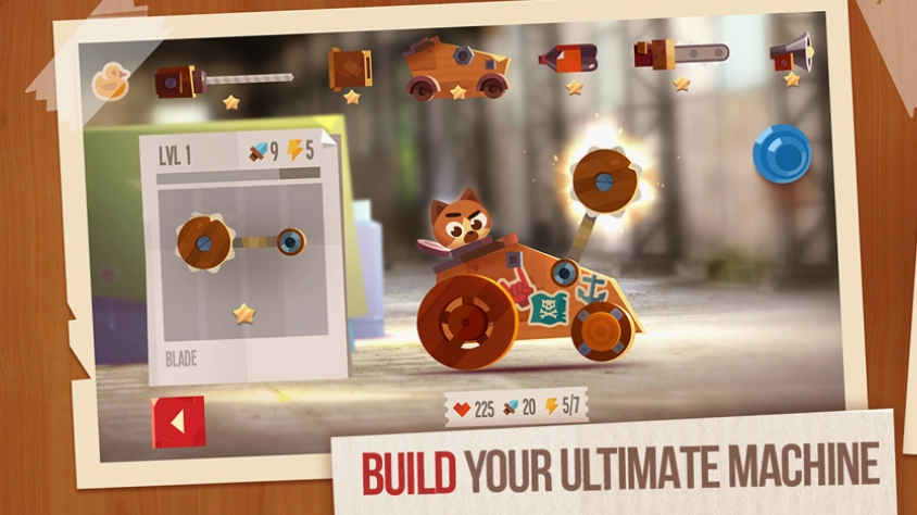 喵星大作战,其英文名称为CATS: Crash Arena Turbo Stars,是一款充满激情与刺激的赛车碰撞类游戏。在游戏里,你能够自由组合各式各样的武器、配件以及车身,亲手设计并打造专属于自己的战车。无论是飞天滑头型、后空翻滑头型,还是飞天金字塔型等,每一种战车设计都具备独特的性能特点。在激烈的比赛过程中,你需要依据对手战车的类型,派遣出最为合适的战车,全力去角逐比赛的胜利。