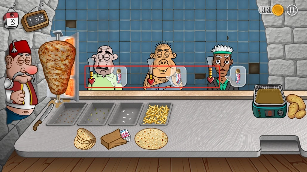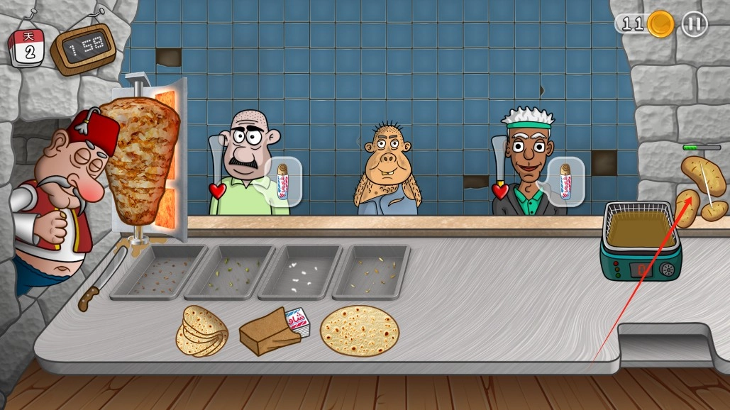 4、在限定时间里制作出更多沙威玛以获取更高收益,持续用心经营,致力于打造出最出色的店铺。