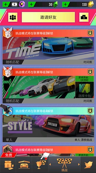 1、进入游戏后点击挑战,点击界面上方的邀请好友;