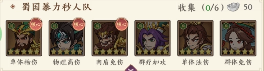 3、关羽+赵云+张飞+诸葛亮+法正+黄月英