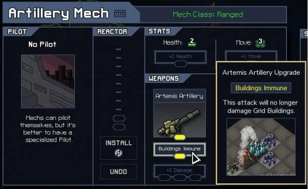 忠告之二:对炮兵机甲(Artillery Mech)进行升级,以此抵消它对建筑造成的伤害