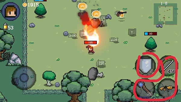 16、武器只需按住就能连续攻击,不用一下下点击,所以前期要是觉得攻速慢,你可以一直按住两个武器来同时攻击