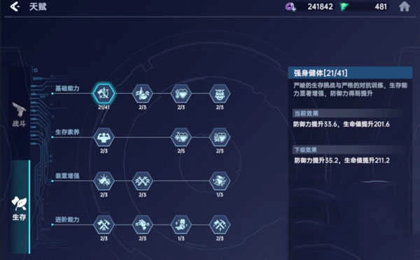 3、基础能力:在提升基础能力时,建议优先选择并增加第一个“强身健体”和第二个“高效吸收”这两项。