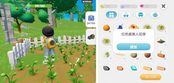 还有个小窍门:在建筑模式里,点击右上角的物品摆放功能,切换到花苞花芽分类栏,就能清晰看到花苞的样子,而且放置时还会显示名称,操作起来更方便。