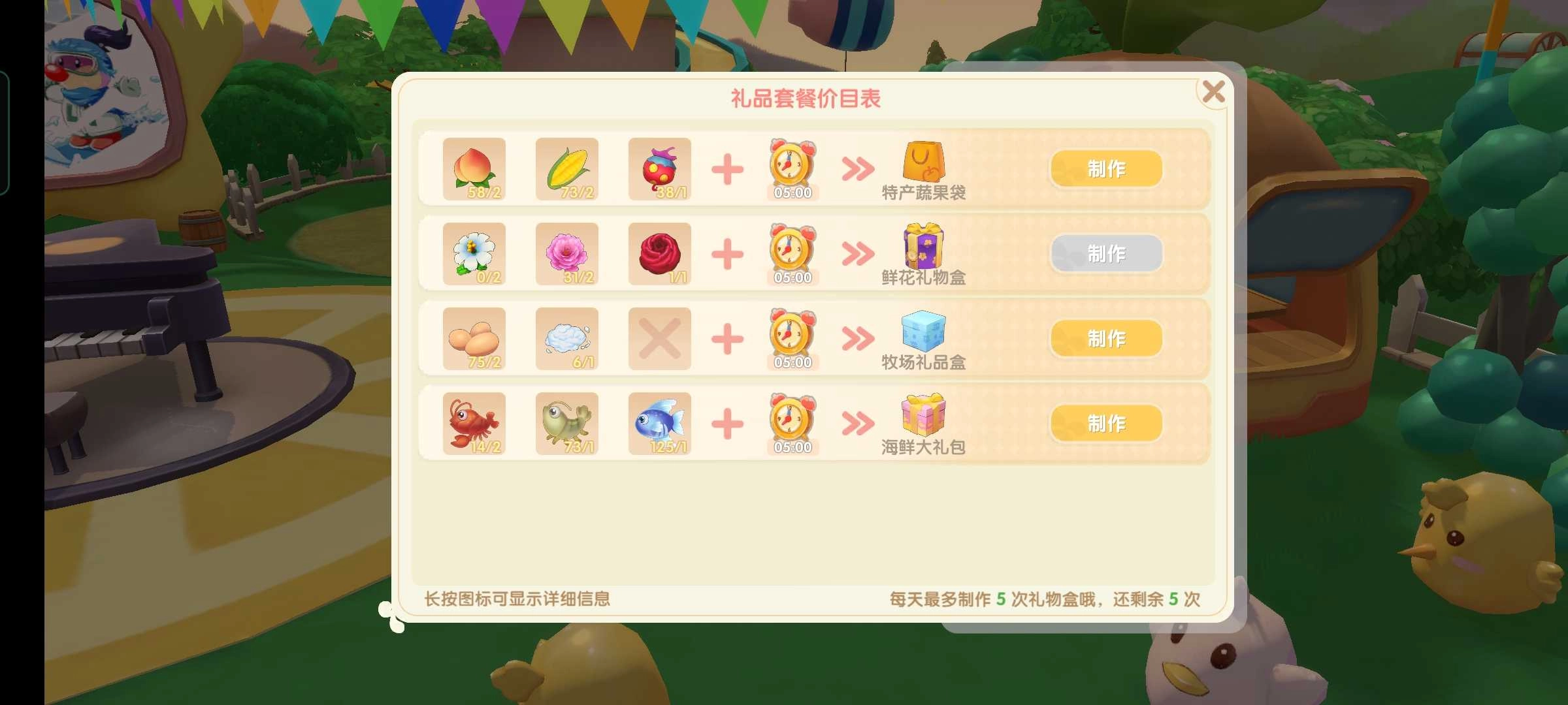 要是觉得这样还不够快,也可以选择在琦琦那里制作礼包来赠送,蔬果礼包能增加15点好感,鲜花礼包可提升28点好感,牧场礼包会增加12点好感,海鲜礼包则能提升20点好感。