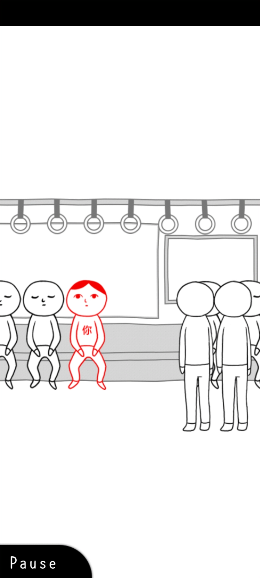 3、先进入第一关,场景设定在一辆公交车上,作为擅长察言观色的你,需要主动往左侧挪出两个座位让给路人。