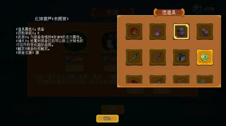可以通过晶体和工作台打造炼丹炉,炼丹炉子可以获取不同的丹药,给玩家增加对应的属性。这个流派很容易增加后期玩家的属性。