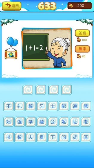 2、画面风格简洁清新,玩法灵活多变,带来沉浸式的成语闯关乐趣。
