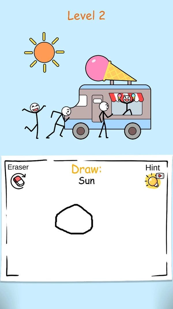 用手指在屏幕上绘制对象。每个级别都需要绘制一个特定的对象。