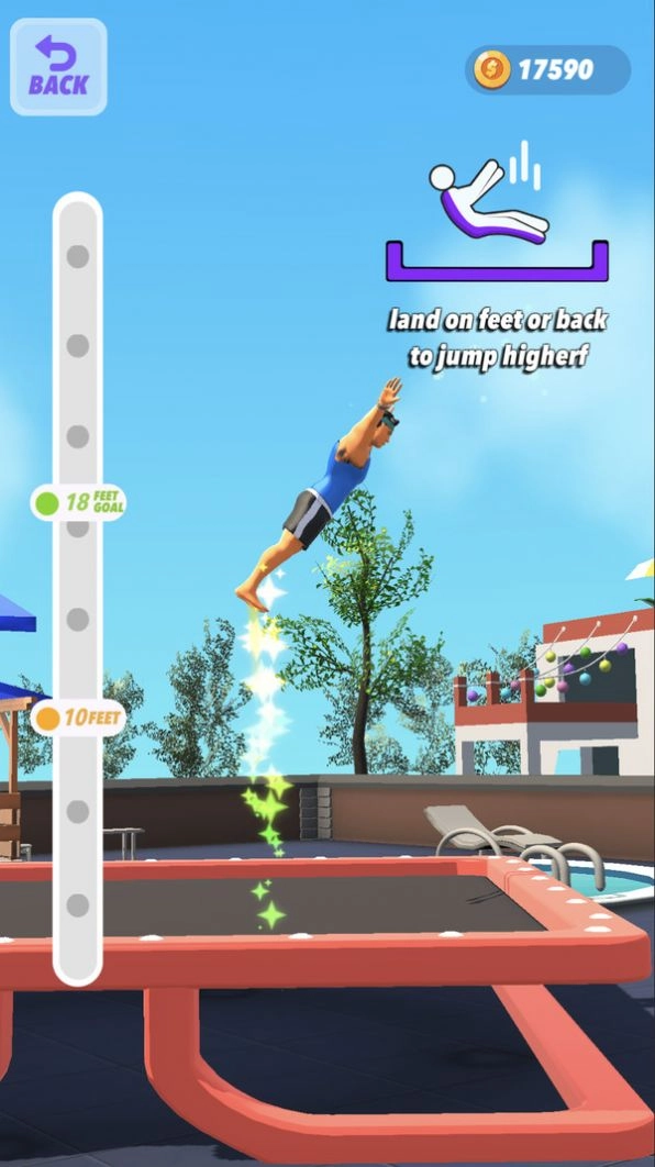 3.体验蹦床的欢乐,此游戏将带给您超强的魔幻体验,让您和您的朋友们互相竞争。