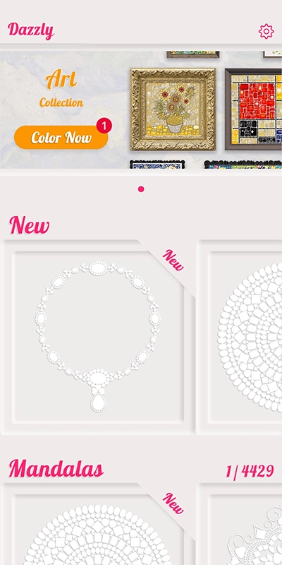 Dazzly绚石工坊是一款结合了解谜、涂色、收集等经典玩法的手机游戏,玩家可以从丰富的色彩以及各类宝石、钻石中自由挑选。