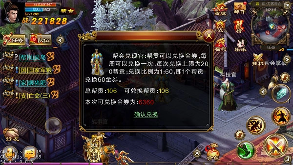 帮会工资的获取渠道包括帮会任务、帮会活动以及帮战。参与这些帮会任务、活动和帮战,除了能得到经验与装备奖励外,还可获取帮贡。帮贡在每周都能前往帮会兑换官处兑换成金券。每周最多可兑换200点帮贡,其兑换比例为1:60,也就是说,每周通过帮贡兑换能拿到的帮会工资最高可达12000金券。