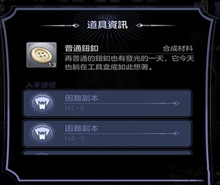 制作纯白之梦需要四种材料,点击其设计图就能查看所需物品。其中,纯白之梦需要6根机纺线,可在困难副本1-2、3-5、5-5、7-6中概率获取;还需要6个普通纽扣,可在困难副本1-6、4-5、6-1中概率获取。