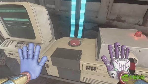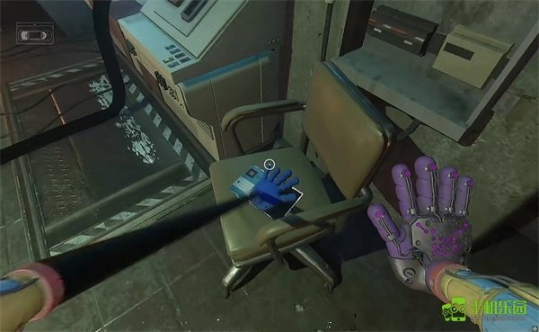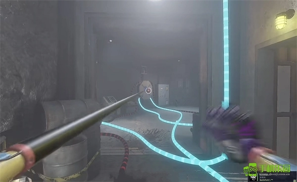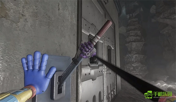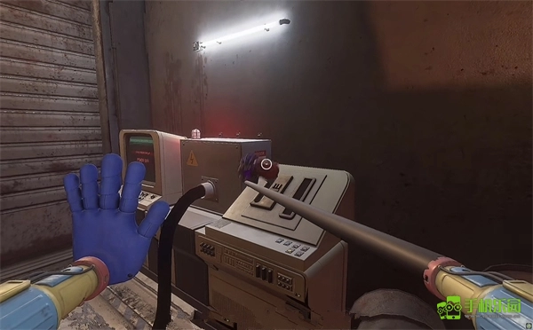 6、打开门后往里走,里面还有一个开关需要拉下来,接着继续往前走,用蓝色手臂去互动前方的开关,这里得触发三个开关才能让电流打通出口。