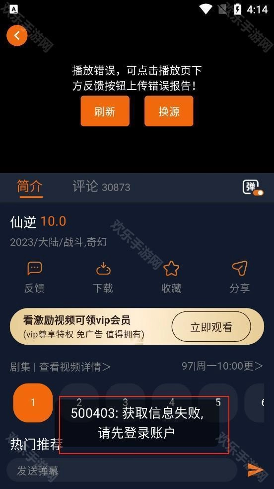3、若此处显示“获取信息失败”,需先完成注册登录操作,方可观看动漫视频。