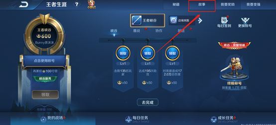 1. 在王者生涯的右上角,点击【故事】,接着选择【世界起源】