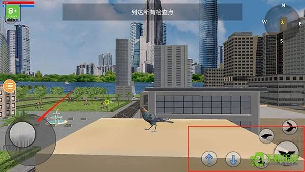 3、游戏操作方式简单,左手的虚拟按键可控制鸽子的飞行方向,右手的虚拟按键则能控制鸽子的动作。