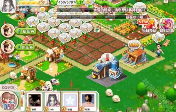 QQ农场的养成要素非常多,玩家可以在游戏中种植、养殖,体验经营农场的乐趣,游戏和电脑端同步延续了经典。游戏具有简单易上手、轻松愉悦的特点,适合各个年龄段的玩家。