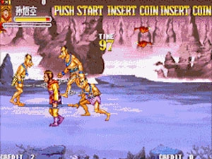 说明:孙悟空的十连斩是最难使的,很少有这样的情况可以让孙悟空十连斩的拳头全数落到敌将的头上,只能是算好距离空打前面几下用伤害更高的最后三下来打。至于其它人的十连斩是不错的,需要注意的是猪八戒打大水怪及沙悟净打幻魔时,应当从左打到右,也就是说让敌将在你的右方,这样敌将在受到攻击时会变成木桩一样一动不动,这样就可以100%的发挥出十连斩的全面威力。