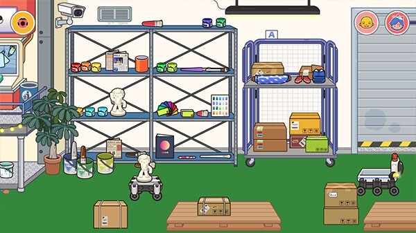 5、接着向左滑动进入染色区域,从货架上挑选颜料,给雕塑进行上色。