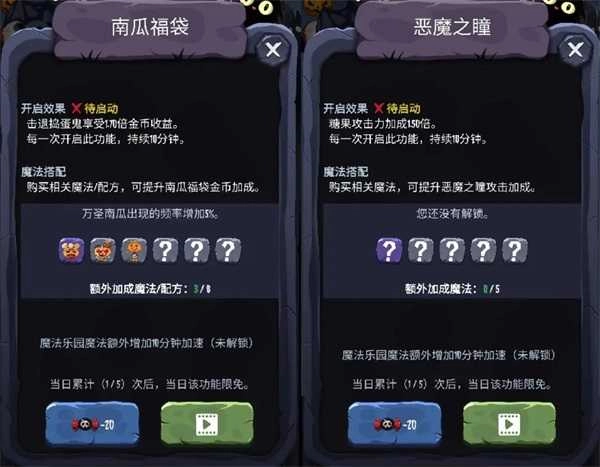 通过魔法乐园能够解锁“南瓜福袋”和“恶魔之瞳”这两项功能,开启这些功能需要使用魔法糖果。