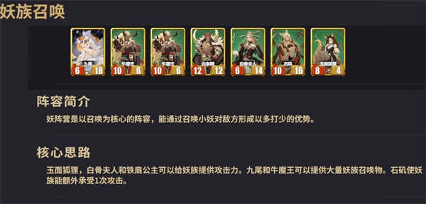 妖族召唤:九尾妖狐、平天大圣牛魔王、黄牙老象白象精、白骨夫人、石矶娘娘、玉面狐狸