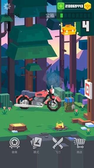 飞刀大师游戏包含打靶模式、攀爬模式、过关模式与连击模式这4种玩法,每种模式都有其独特的玩法、规则和特点。不过,作为游戏的入门阶段,在尝试其他玩法和道具之前,建议先在连击模式中熟悉刀具的特性与重量,再进行后续的游戏体验。