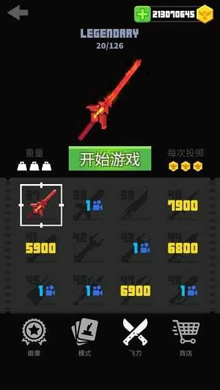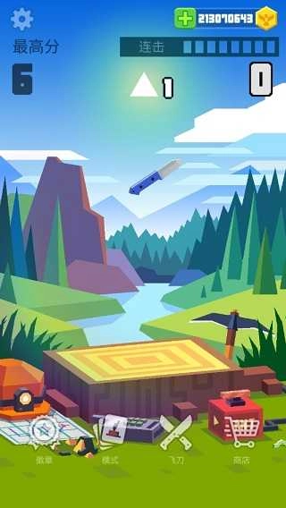 即便用相同的力度投掷,重量各异的刀具抛出去后的飞行高度与旋转角度都会有差别,这些都得通过大量游玩才能熟练掌握;而且每次投掷时产生的金币数量,通常也和刀具的价值成正比。