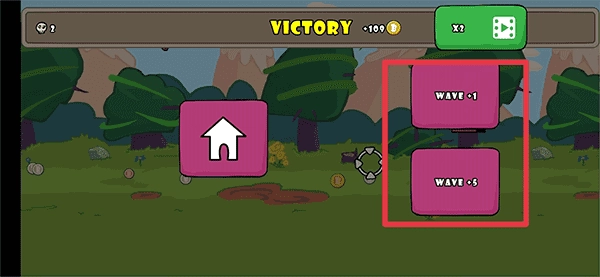 胜利之后,你可以通过点击WAVE+1和WAVE+5这两个选项,来增加游戏里敌人的波数。
