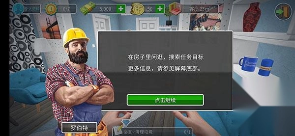 在屋子里四处转转,找找任务要找的东西,想了解更多内容的话,看一下屏幕下方就行。
