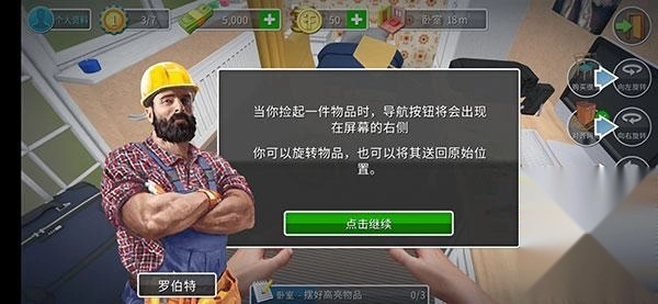 当你拾起一件物品时,导航按钮会出现在屏幕右侧,你既可以旋转该物品,也能把它放回原来的位置。