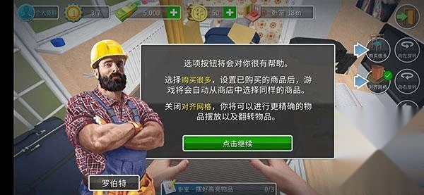 选项按钮会给你带来不少便利。要是选择“购买很多”并设置好已购买的商品,游戏就会自动从商店里挑选相同的商品。关闭对齐网格功能后,你就能更精准地摆放物品,还能翻转物品了。