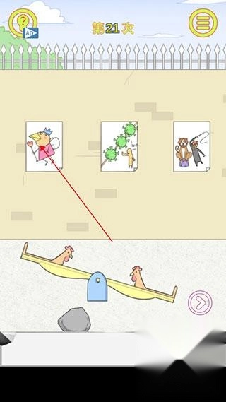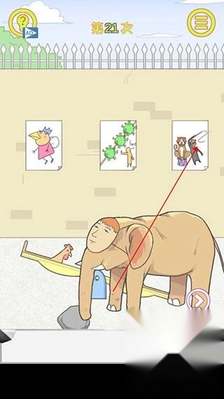 第三部,最后从墙上第三幅画上拿到鞭子,把鞭子放到大象身上,大象就会跳上跷跷板,日记就会被弹出去。