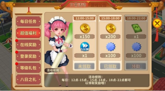二、超值福利:每天在此三个时间段都可领取奖励哦!