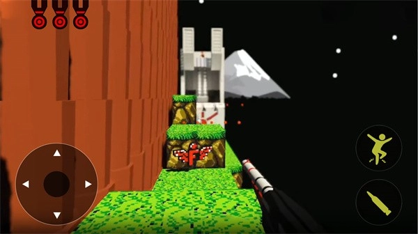 我们只能通过跳跃来躲避敌人射来的子弹。一旦被击中一次,就会减少一条生命值。而且每通过一个关卡,我们拥有的生命值就只有三条!