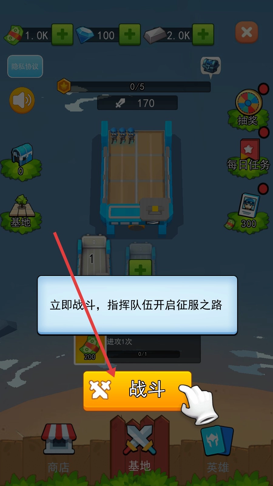 打开游戏,点击【战斗】,指挥队伍开启征服之路。