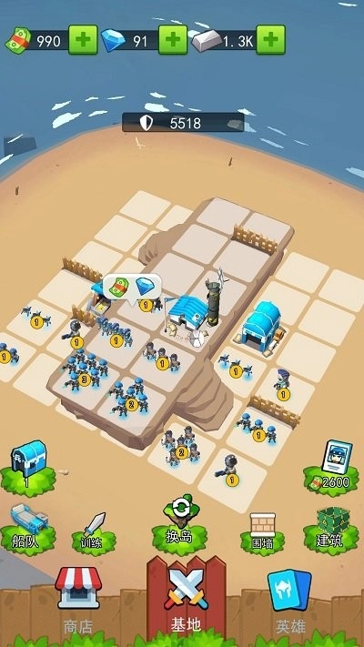 在岛屿上搭建属于自己的房屋、兵营、堡垒、采石场、木材场以及其他各类建筑设施。