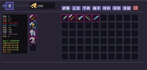 进入游戏后持续刷取右侧的史莱姆,合成高级钥匙,随后进入高级副本,获取武器装备。