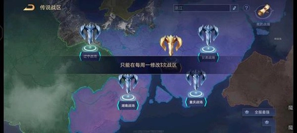 在个人资料页面点击右上角的定位按钮,即可进入荣耀战区的定位界面。(注意:每个周一可设置一次所在大区)