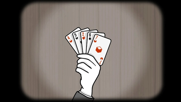 在《方块A》第三集里,角色用笔记本电脑重新挑战第三关时,从袖口处发现了这张牌。