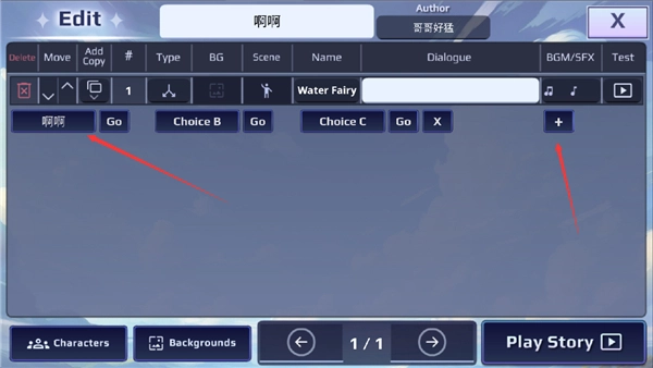 创建角色后,选择首个选项来开启新故事,并构建分支角色的剧情文字。