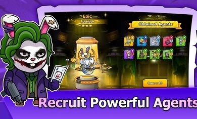 玩家能够招募风、火、雷、水、土等不同阵营的特工,这些兔子特工各自具备独特的技能与玩法,不同属性相互搭配时还会触发额外效果。