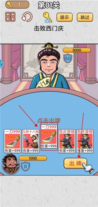 选中要出的卡牌然后点击出牌即可进行攻击