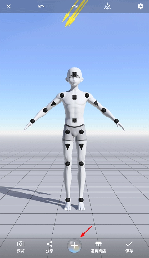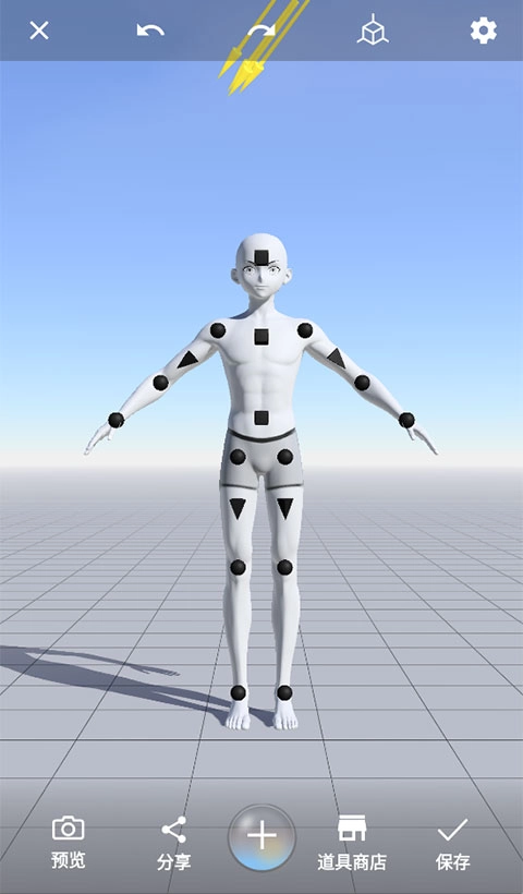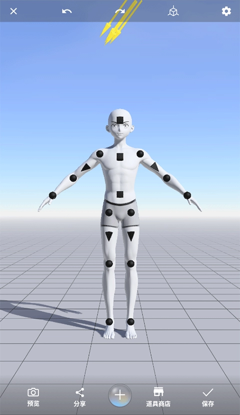 - 拖动人偶上的控制点来调整造型。我们的物理引擎能让您如同操作真实素体人偶一般操控3D人偶模型,还会自动将其调整成您期望的动态姿势。