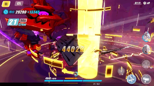 4、每一位战姬都有着独特的连击操作方式,每一关的末尾都会出现1个需要击败的小BOSS,最后就让我们一同欣赏那些炫酷的技能效果吧!